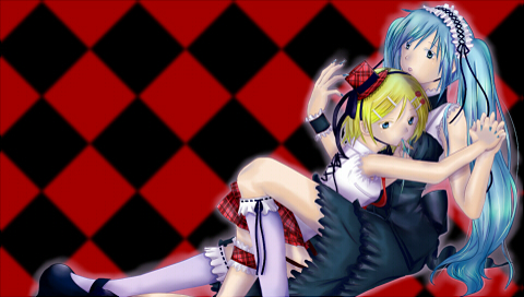 ゴスミクリン:だいぶ前に描いたものです。やっぱりらくがきだけじゃ申し訳ないよな・・・と、あげてみる。原寸サイズはピアプロにおいてあります。ピアプロの某コラボで「PSP用壁紙リク」があり、それように描いたので横長です。